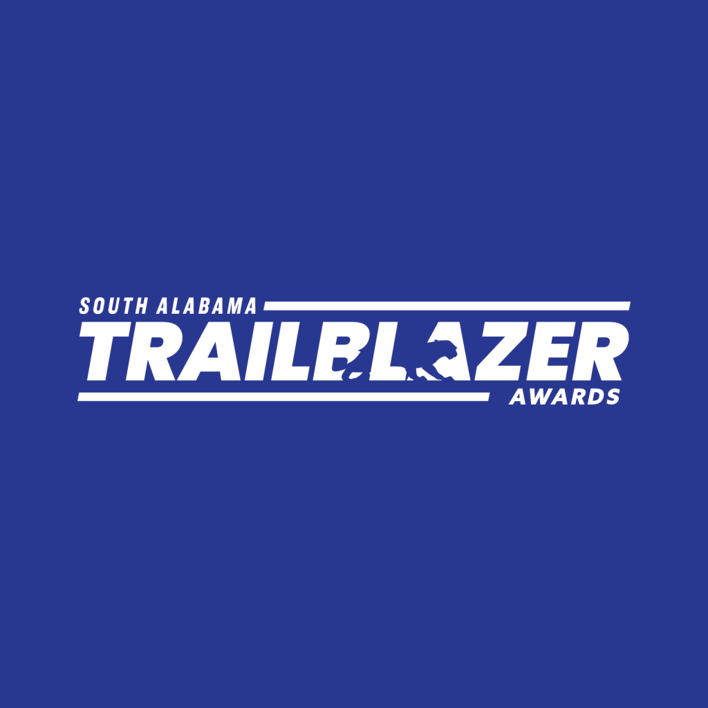 The dynamic use of horizontal lines conveys movement and momentum, aligning with the trailblazing spirit of the awards. The navy blue and white color scheme evokes trust and authority, qualities essential for an event celebrating leadership and innovation. This logo encapsulates the essence of recognizing pioneers who make a difference in South Alabama.